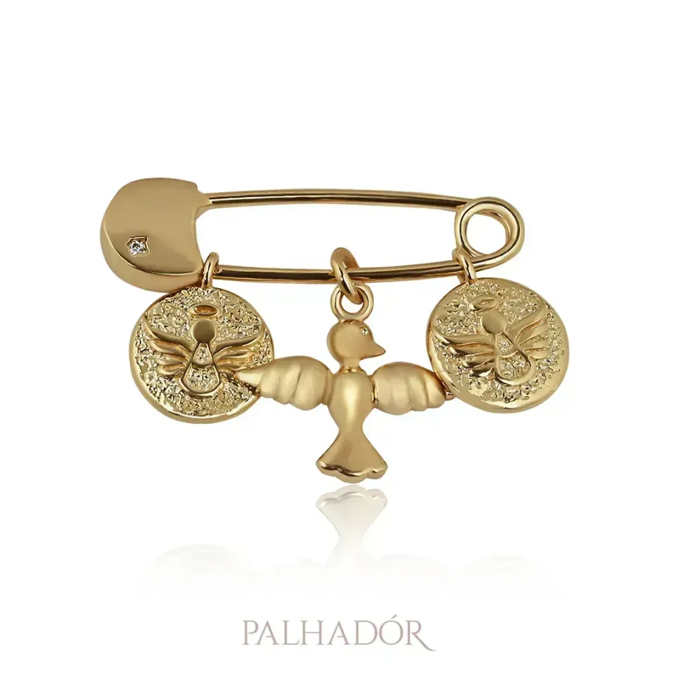 Alfinete Divino E Anjo banhado em Ouro 18k.