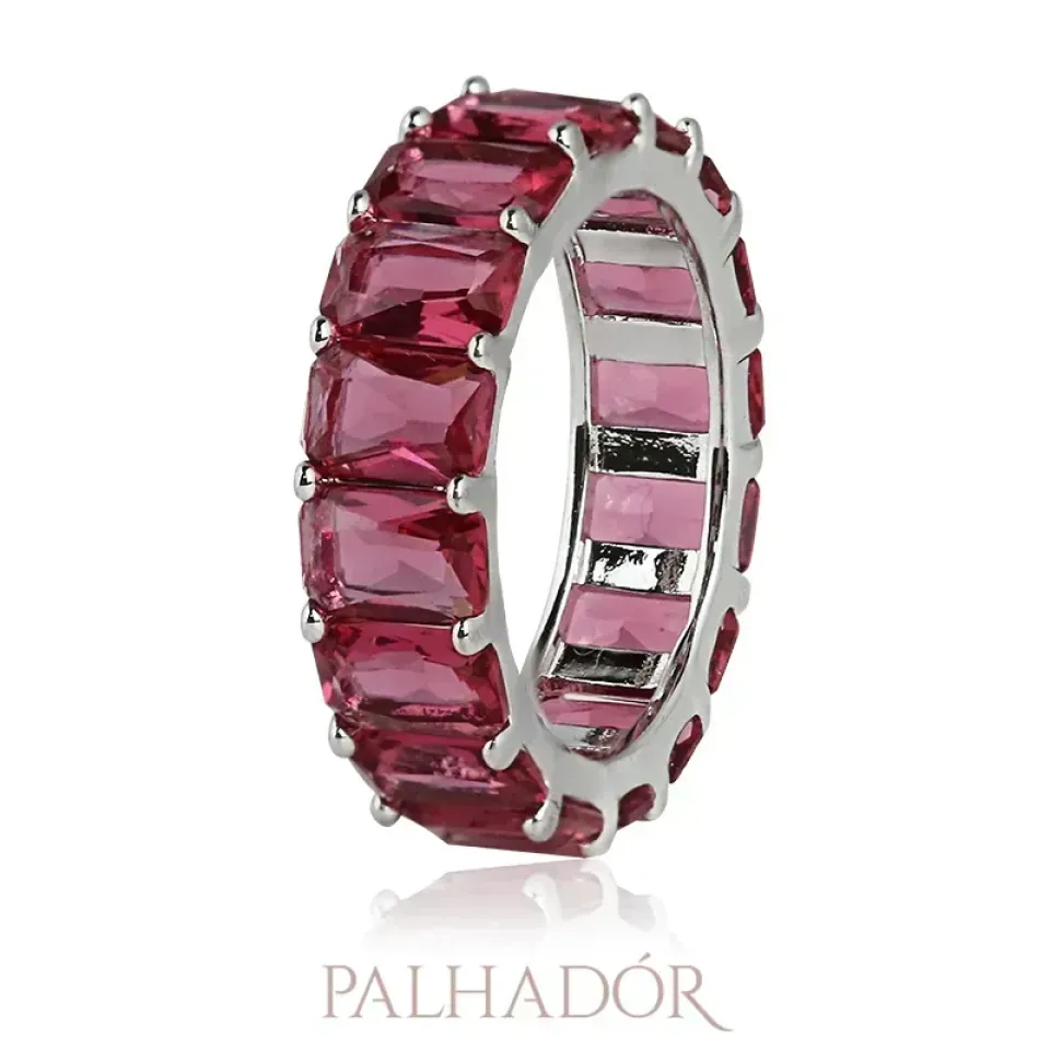 ALIANÇA BAGUETE RUBI RÓDIO BRANCO