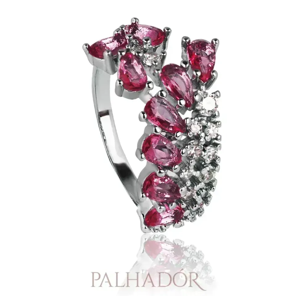 ANEL ARCO CRAVEJADO RUBI RÓDIO BRANCO