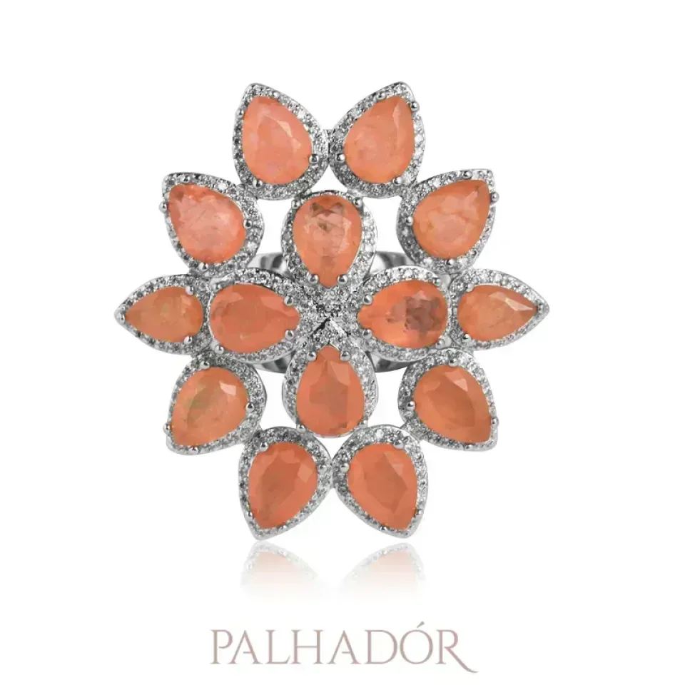 ANEL CRAVEJADO LUXO GOTAS MORGANITA RÓDIO BRANCO