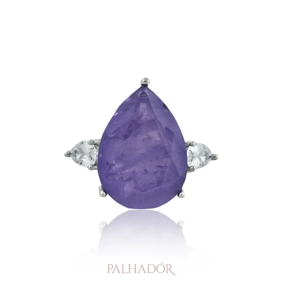 Este anel combina a beleza de uma pedra fusion central em formato de gota, com o encanto de duas pedras de zircônia a sua volta, elevando ainda mais a sua beleza e sofisticação.