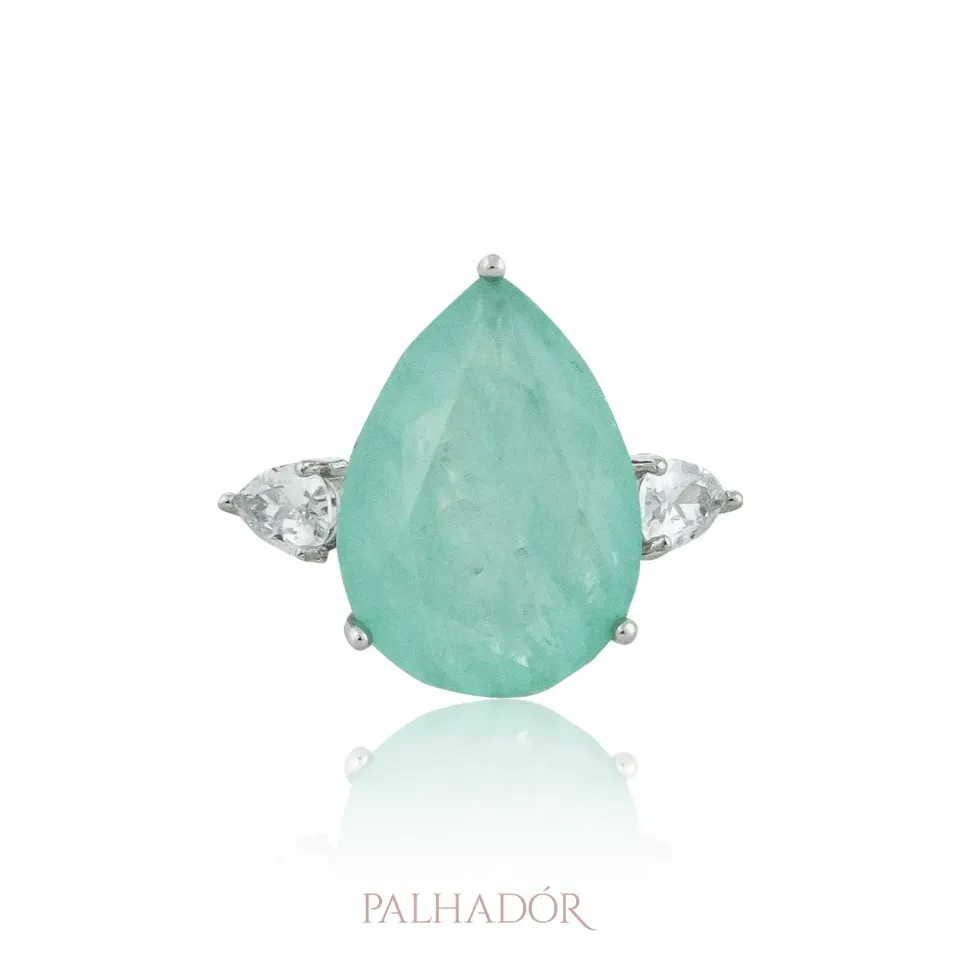 Este anel combina a beleza de uma pedra fusion central em formato de gota, com o encanto de duas pedras de zircônia a sua volta, elevando ainda mais a sua beleza e sofisticação.