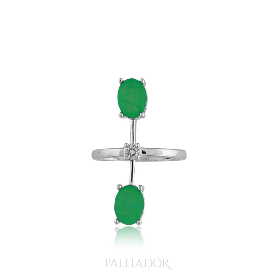 Anel Linha Fusion Esmeralda Ródio Branco