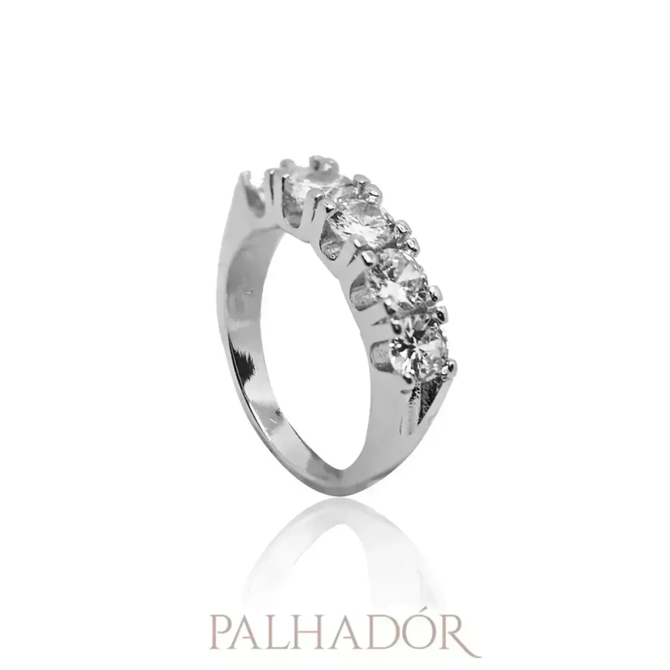 Anel Meia Aliança Cravejada banhado em ródio branco