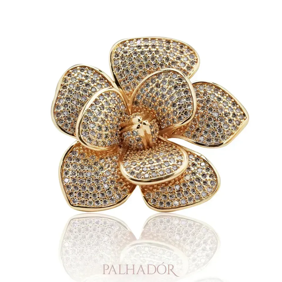 Este anel excepcional captura a delicadeza das pétalas de uma flor, transformando-as em uma joia deslumbrante que transcende o tempo. Cada pétala esculpida com precisão é uma obra-prima em si, transmitindo a graciosidade natural e a textura suave das flores. As zircônias cuidadosamente cravejadas ao longo das pétalas refletem a luz de maneira deslumbrante, criando um jogo de brilho que evoca a cintilação dos raios de sol nas manhãs de primavera. Uma expressão sublime de beleza e elegância que certamente cativará os olhares e iluminará qualquer conjunto com seu brilho radiante.