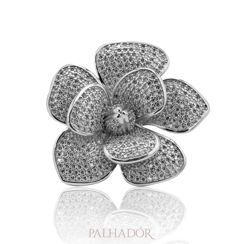 ANEL PÉTALAS CRAVEJADAS ZIRCÔNIA RÓDIO BRANCO