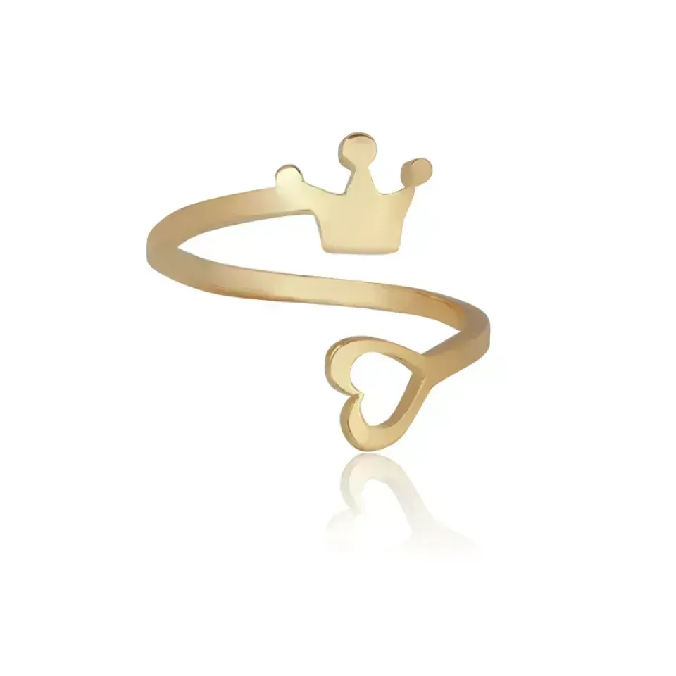 Anel Petit Coroa E Coração banhado em ouro 18k.