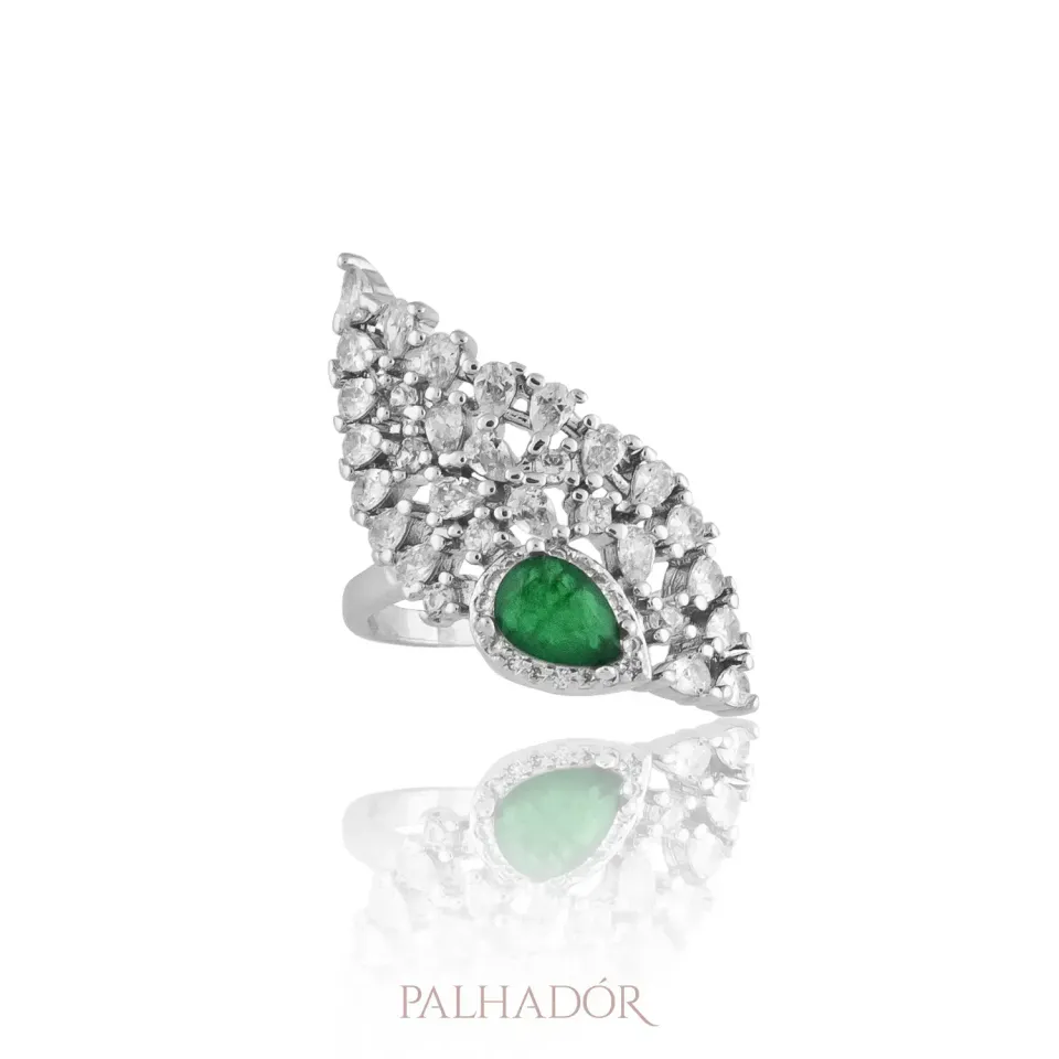 Anel Rosetta Jwl Fusion Esmeralda Ródio Branco
