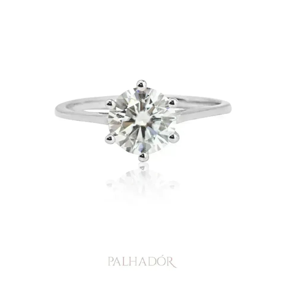 ANEL SOLITÁRIO MOISSANITE PRATA 925 2 QUILATES