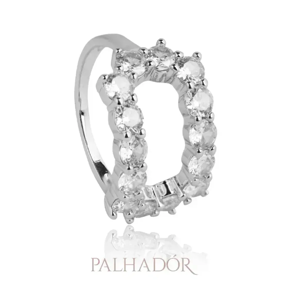Anel Retangular Cravação Vazada banhado em ródio branco.
