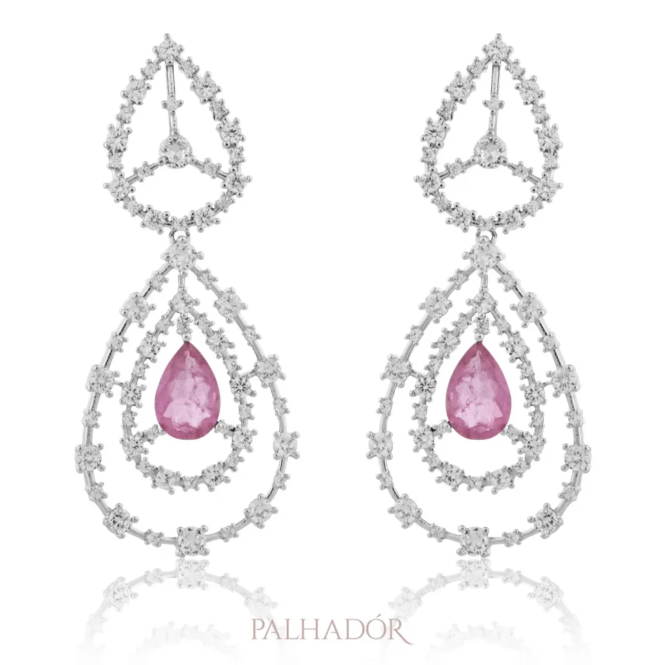 Brinco Diamond Thassia Fusion Kunzita Ródio Branco