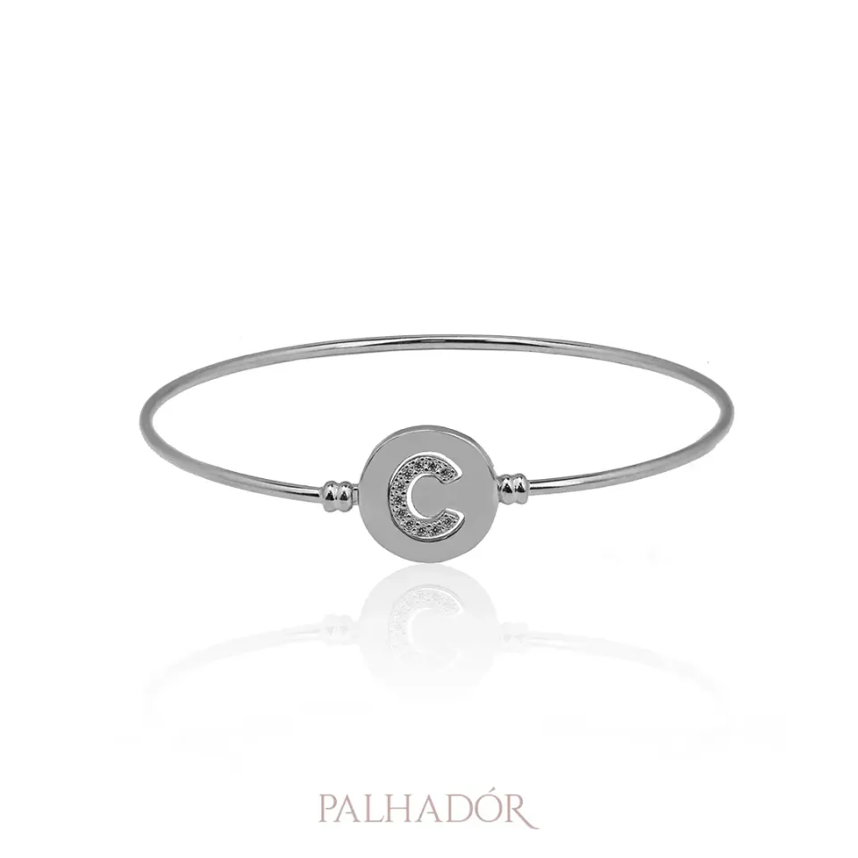 O design inovador deste bracelete é caracterizado por um mecanismo de fecho "click" que oferece praticidade ao colocá-lo e retirá-lo do pulso, garantindo um encaixe seguro e confortável. O detalhe especial que o torna único é a adição da inicial cravejada com pedras de zircônia, conferindo-lhe um toque personalizado e sofisticado.
