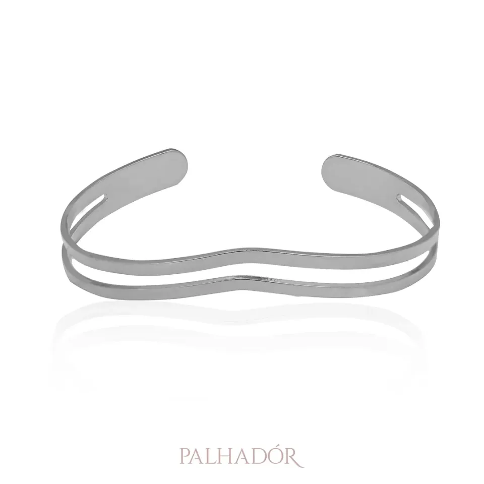 XEste modelo de bracelete é uma joia sofisticada e moderna que combina a elegância e beleza do brilho do banho em ródio branco. O design apresenta um bracelete único com formas curvas e fluidas que se encaixam no pulso oferecendo um visual elegante e contemporâneo trazendo um toque de originalidade e modernidade ao design, tornando-a uma peça única.