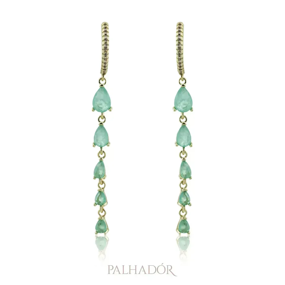 Brinco Argola Cravejada Gotas Fusion Turmalina Ouro