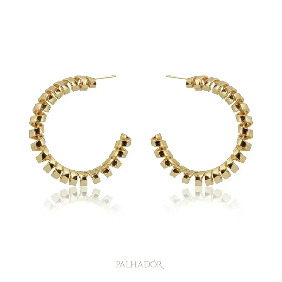 Este deslumbrante brinco de argola em espiral banhado a ouro é uma escolha elegante e acessível para adicionar um toque de luxo ao seu visual. Apresentando um design moderno e contemporâneo, este brinco combina perfeitamente estilo e sofisticação. A argola em espiral adiciona um toque de originalidade e movimento, tornando-o uma peça de destaque que certamente chamará a atenção.