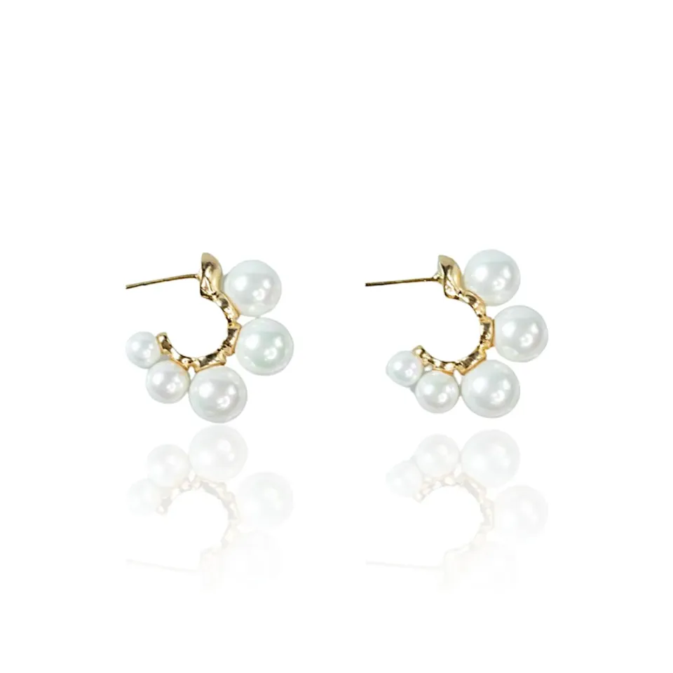 Brinco Curva Argola com 5 Pérolas