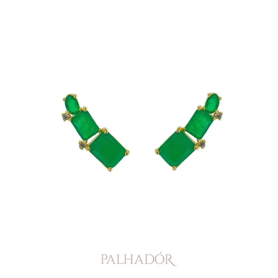 Brinco Ear Cuff Fusion Esmeralda Ouro