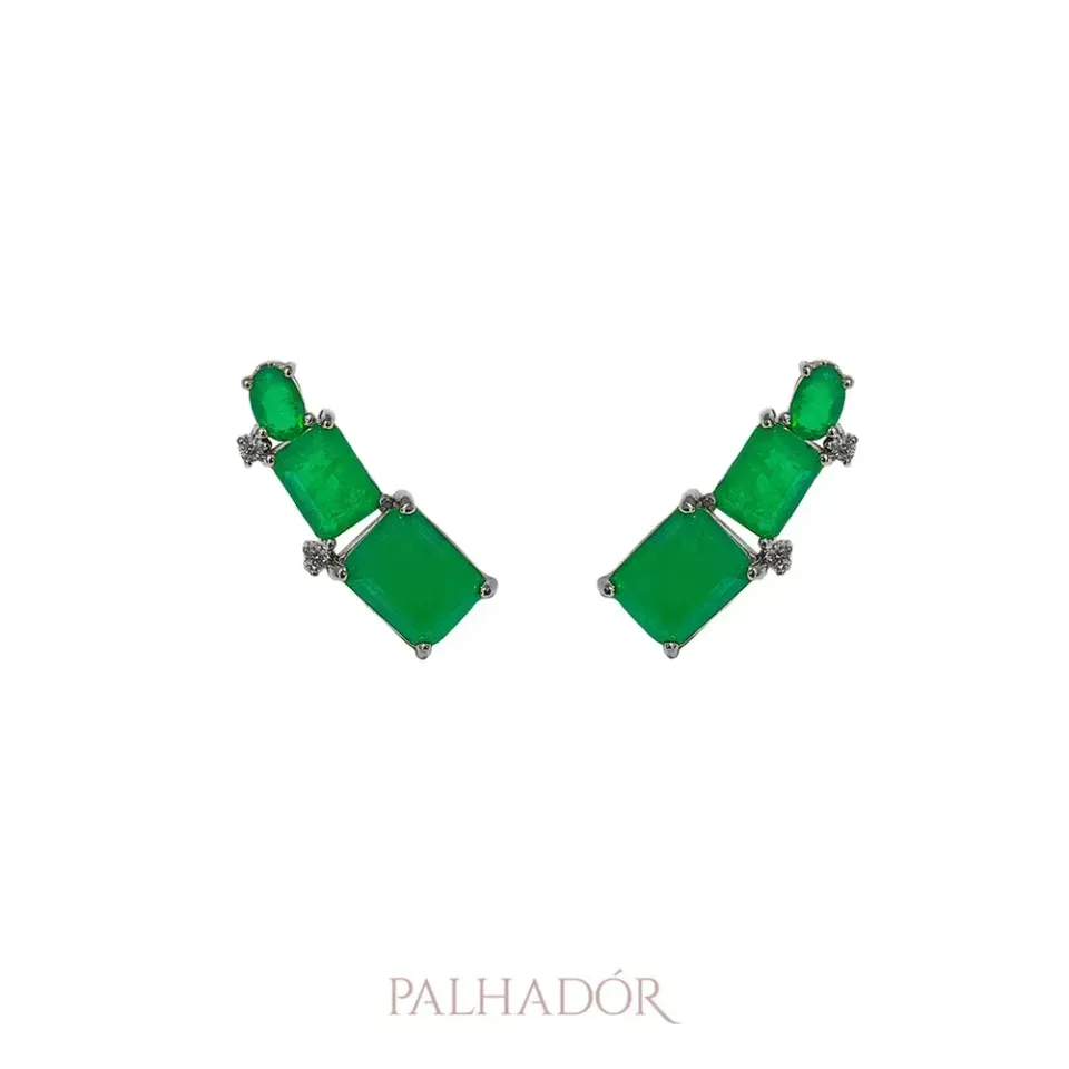 Brinco Ear Cuff Fusion Esmeralda Ródio Branco