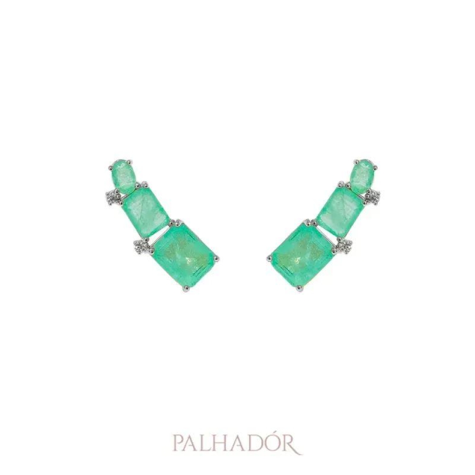 Brinco Ear Cuff Fusion Turmalina Ródio Branco