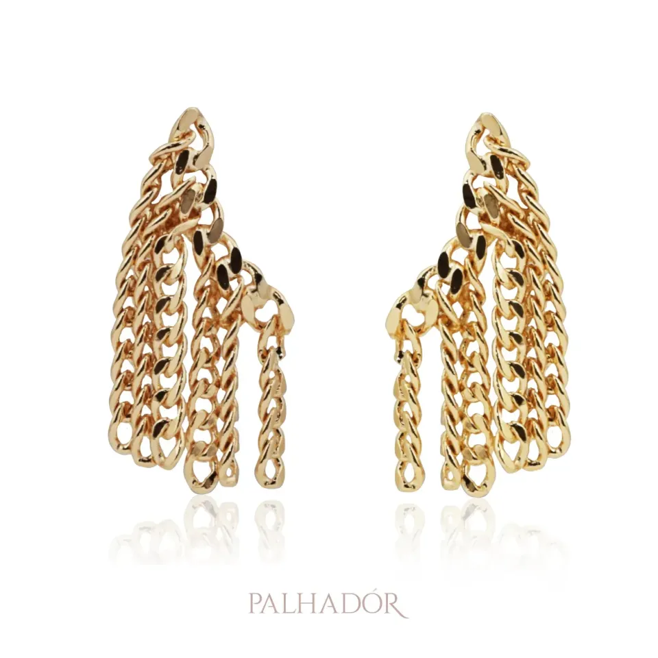 O brinco earcuff com franja de corrente banhado em ouro é uma peça de destaque e personalidade. Com um design moderno e ousado, este brinco apresenta uma franja de corrente delicada e elegante que adiciona movimento e textura ao acessório. O banho em ouro confere ao brinco um acabamento sofisticado e luxuoso, além de um brilho intenso e elegante.