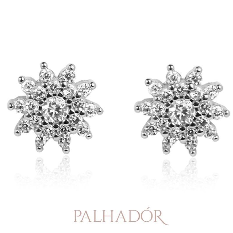 BRINCO FLOR CRISTAL RÓDIO BRANCO