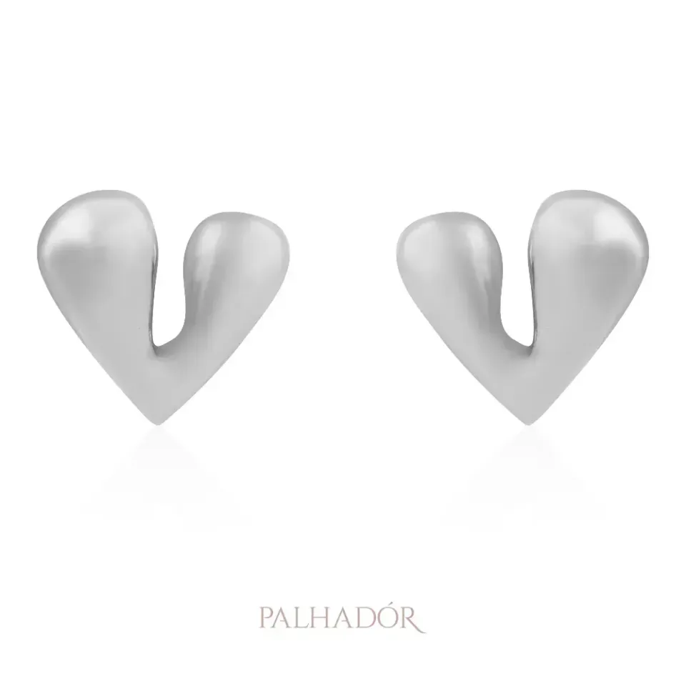 Brinco Orgânico Coração banhado em ródio branco