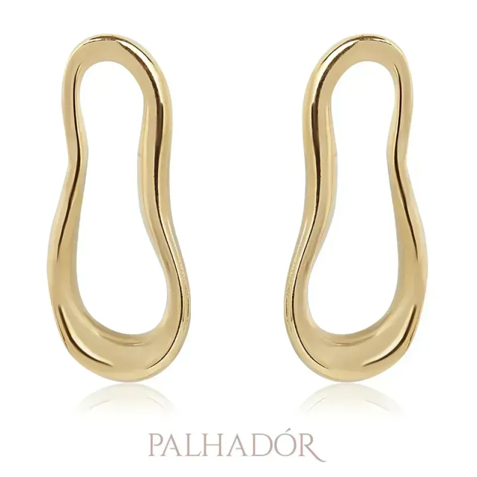 Brinco Oval Vazado Orgânico banhado em ouro 18k.