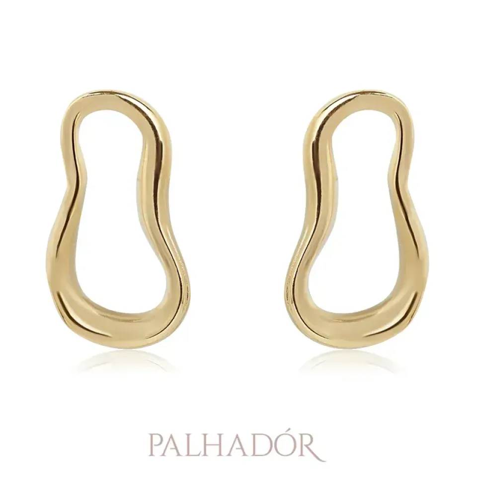 BRINCO OVAL VAZADO ORGÂNICO P OURO