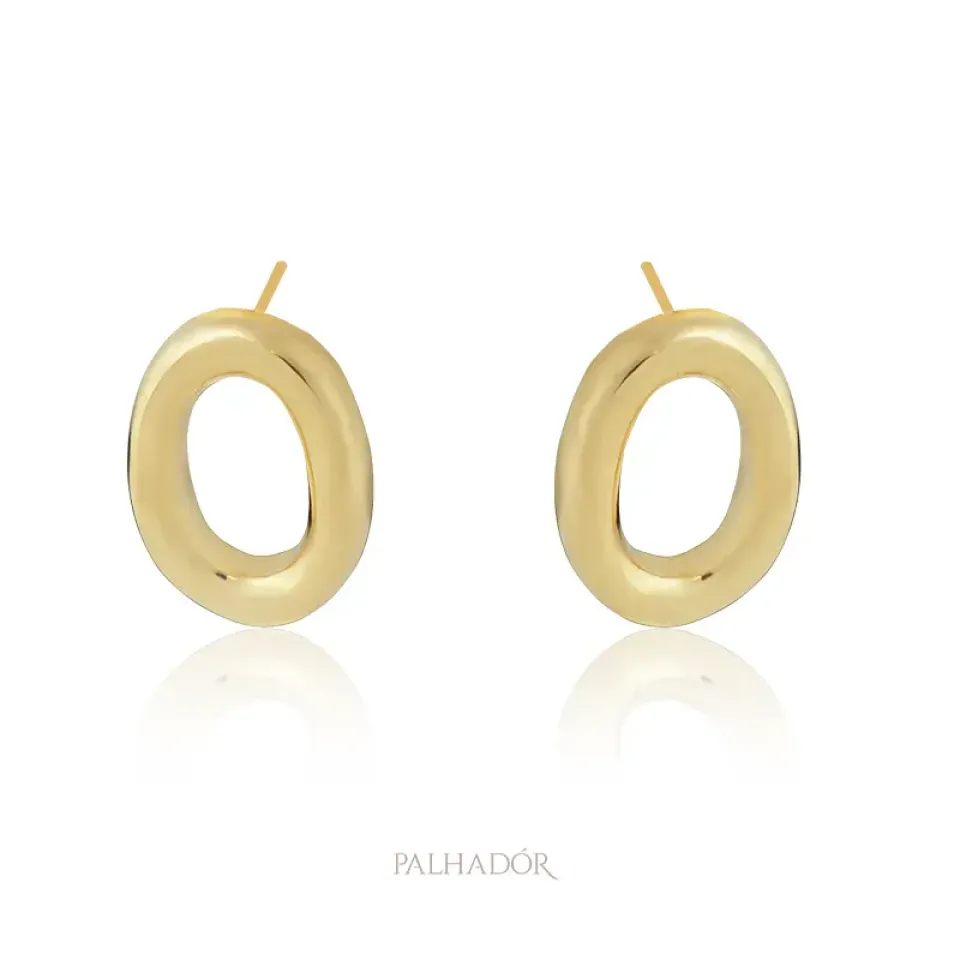 O brinco oval vazado apresenta um design elegante e sofisticado, perfeito para adicionar um toque de glamour às suas joias. Ele é confeccionado com um banho em ouro 18k que proporciona um brilho intenso e duradouro.