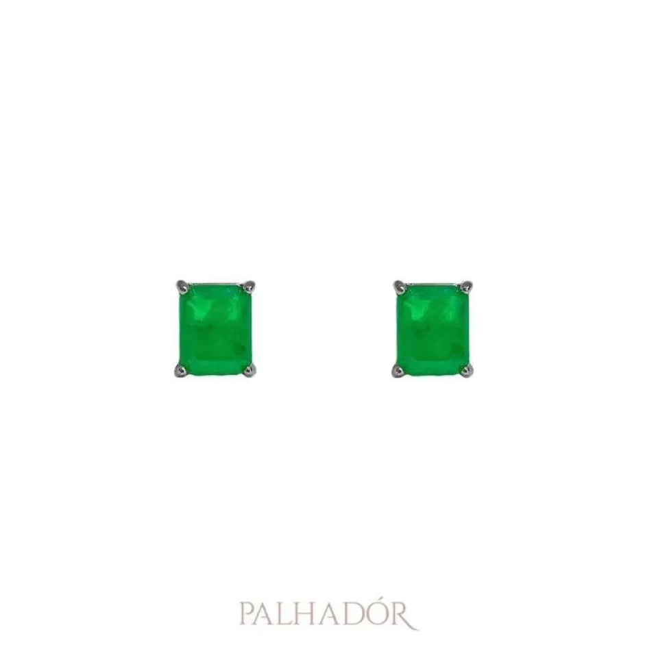 Brinco Retangulo Fusion Esmeralda Ródio Branco G