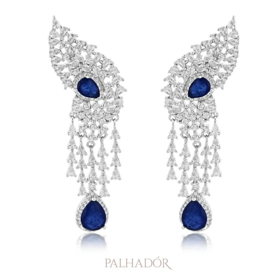 Brinco Rosetta Jwl Fusion Safira Ródio Branco