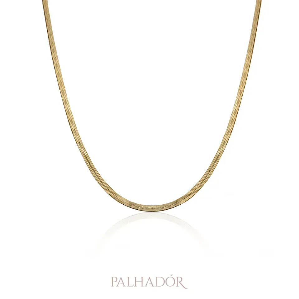 O Colar Choker Fita 2 mm banhado em ouro 18k apresenta um design minimalista. Este colar apresenta uma corrente que envolve o pescoço de maneira delicada. Seu banho em ouro proporciona um acabamento brilhante e luxuoso, que complementa perfeitamente com outros acessórios e looks. Além disso, seu formato versátil é perfeito para ser usado em diversas ocasiões.