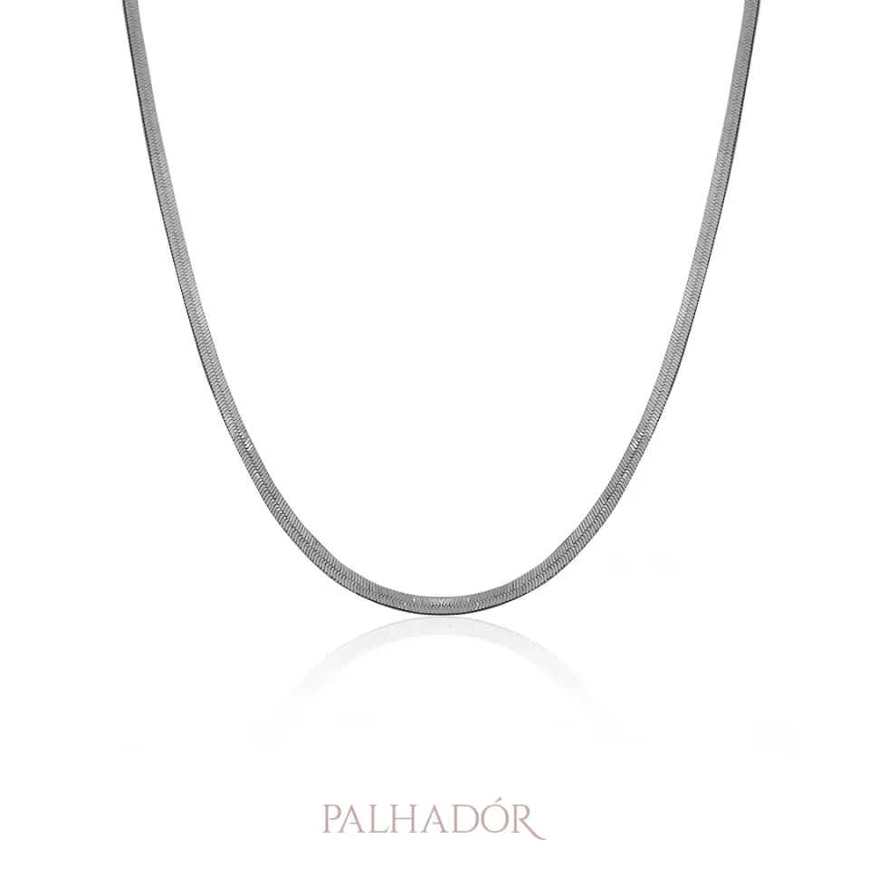 O Colar Choker Fita 3 mm banhado em ródio branco apresenta um design minimalista. Este colar apresenta uma corrente que envolve o pescoço de maneira delicada. Seu banho em ródio branco proporciona um acabamento brilhante e luxuoso, que complementa perfeitamente com outros acessórios e looks. Além disso, seu formato versátil é perfeito para ser usado em diversas ocasiões.