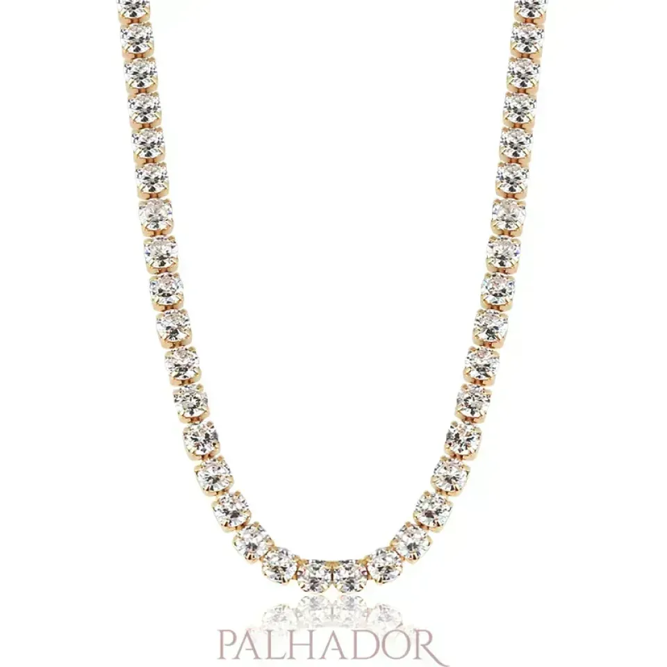 O Colar Choker Riviera apresenta um design sofisticado com pedras brilhantes em zircônia de 3mm ao longo de toda a sua extensão. Essas pedras proporcionam um brilho sutil e discreto, agregando um toque de luxo ao colar. As pedras são cuidadosamente selecionadas e cravejadas assegurando a longevidade da peça.