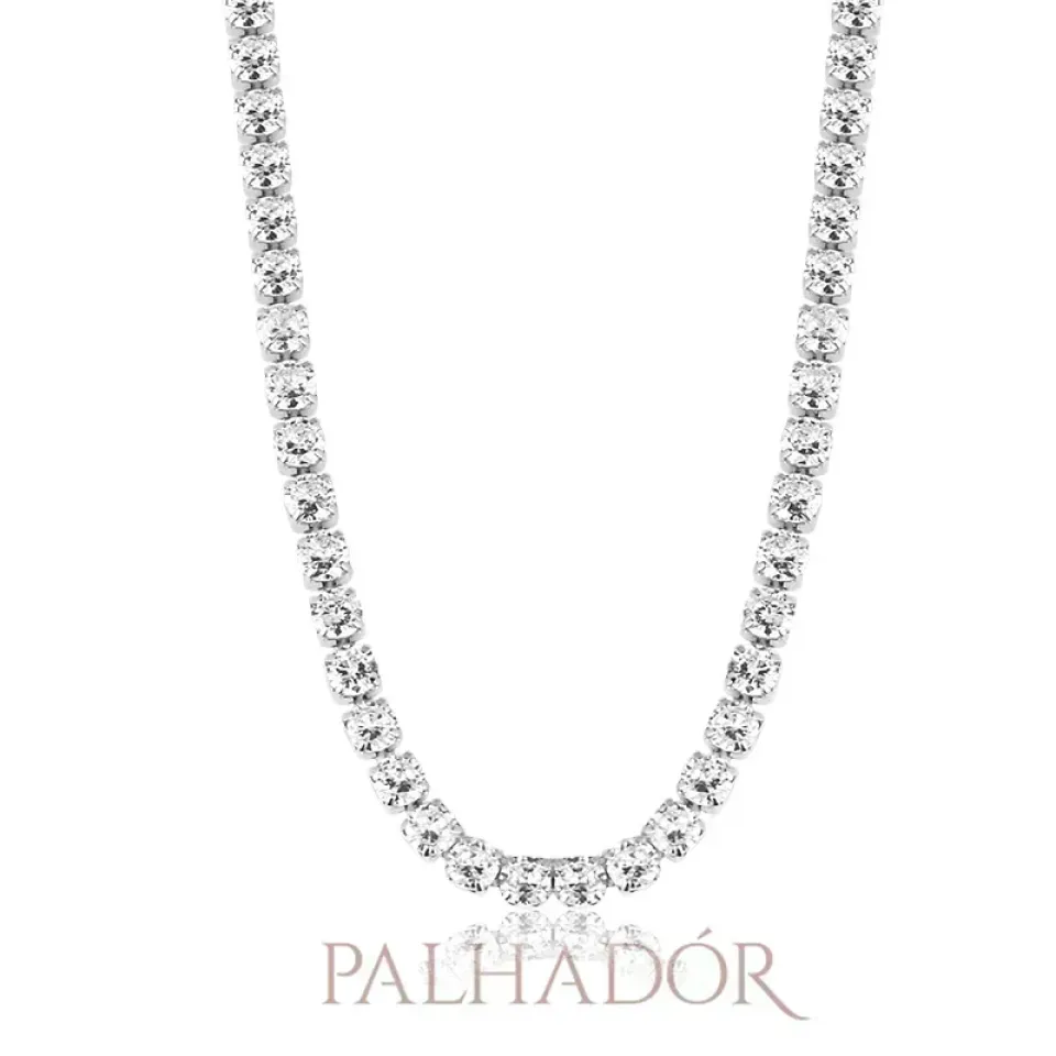 O Colar Choker Riviera apresenta um design sofisticado com pedras brilhantes em zircônia de 3mm ao longo de toda a sua extensão. Essas pedras proporcionam um brilho sutil e discreto, agregando um toque de luxo ao colar. As pedras são cuidadosamente selecionadas e cravejadas assegurando a longevidade da peça.