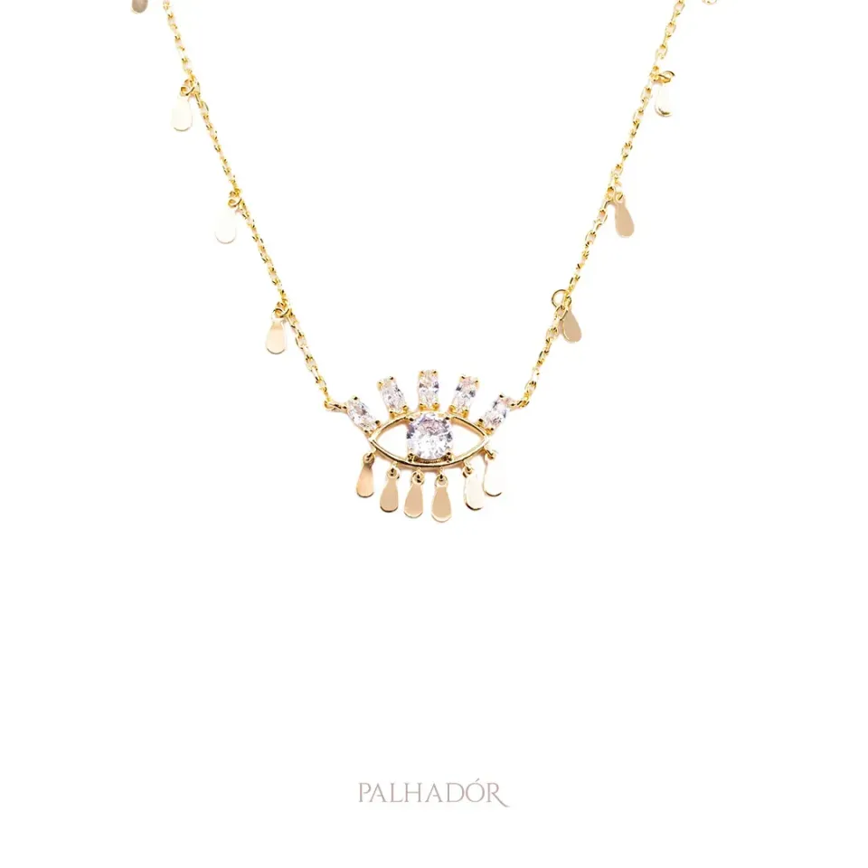 Colar Olho Grego de cristal e gotinhas banhado em ouro 18k.