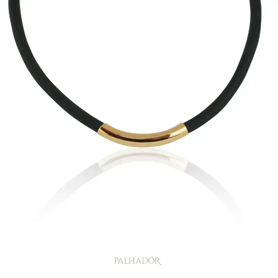 O Colar Choker é um acessório versátil e elegante que traz um toque sofisticado a qualquer look. O design minimalista deste colar apresenta um tubo banhado em ouro 18k.