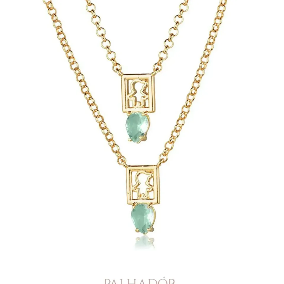 Colar Escapulário Mom 2 Meninos Topázio banhado em Ouro 18k.