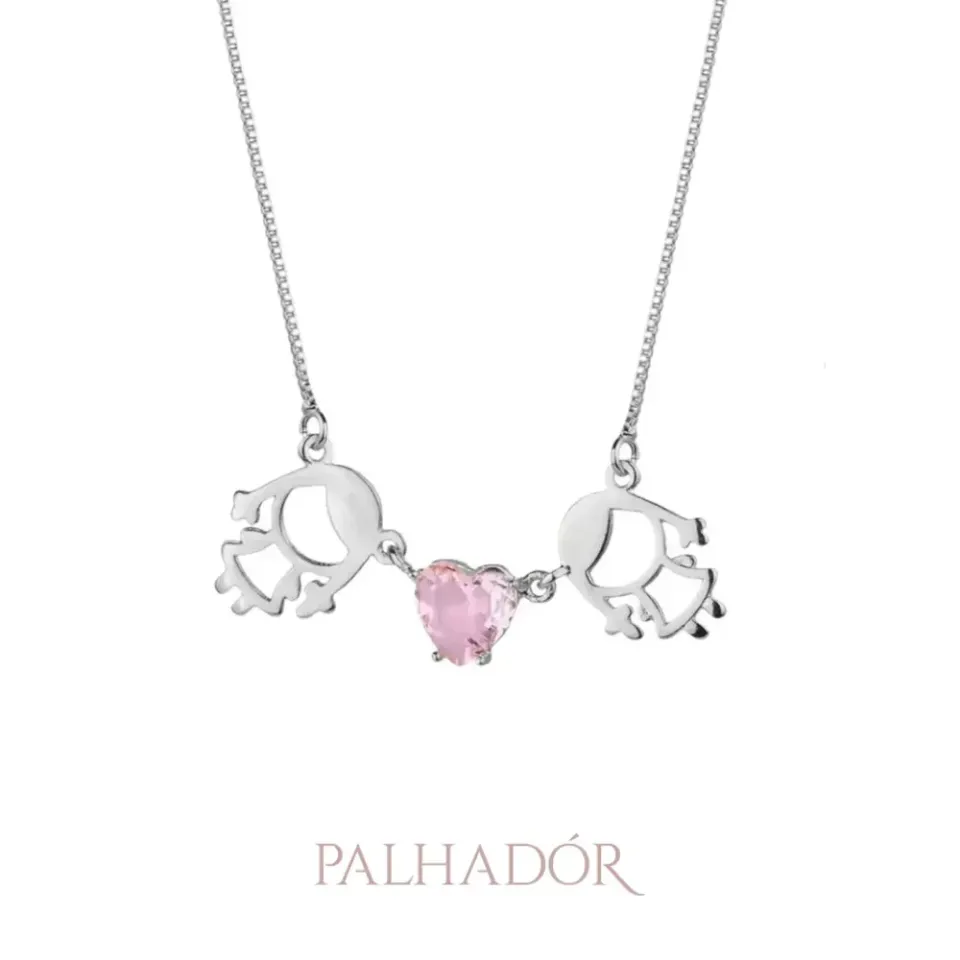 Colar Mom 2 Meninas Morganita banhado em ródio branco.