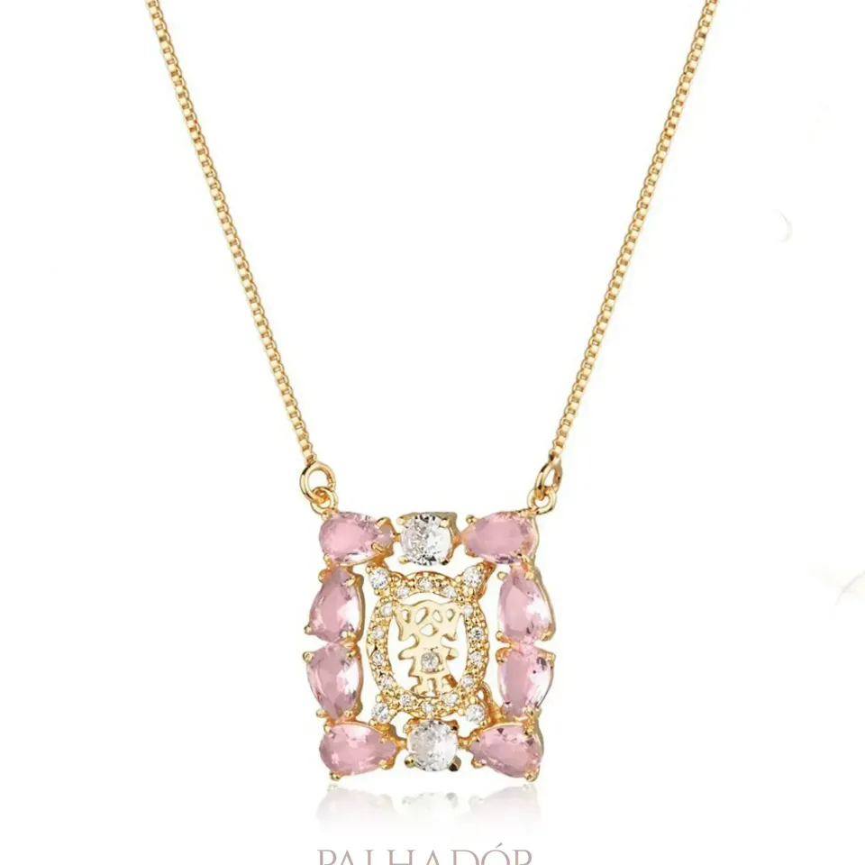 Colar Mom Quadro Menina Morganita banhado em ouro 18k.