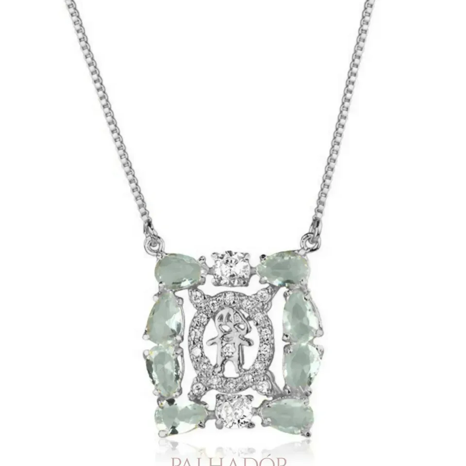 Colar Mom Quadro Menino Topázio banhado em Ródio Branco.