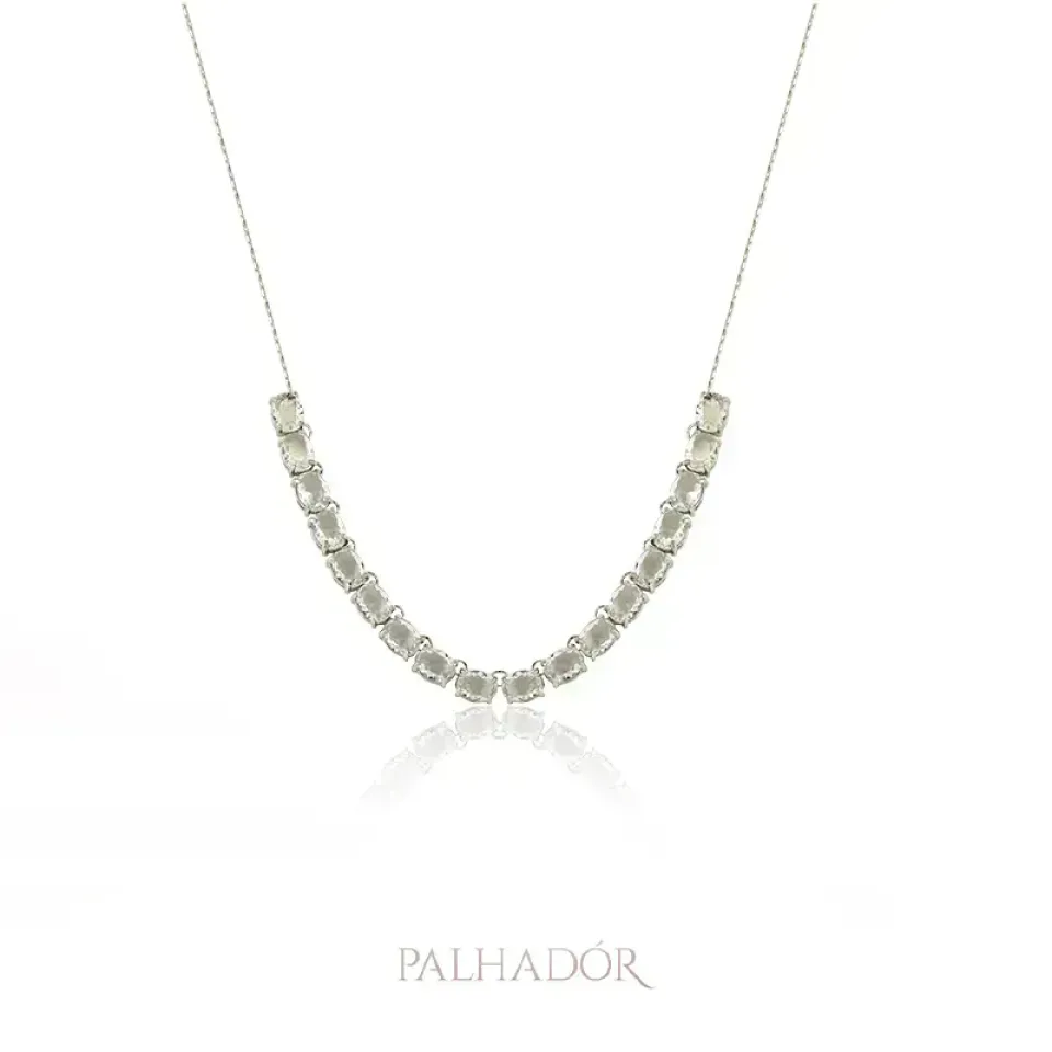 COLAR PEDRAS CRISTAL OVAL RÓDIO BRANCO