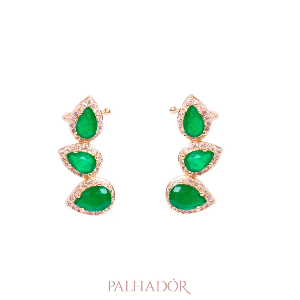 Ear Cuff 3 Gotas Fusion Esmeralda