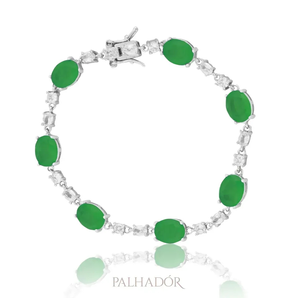 Pulseira Fusion Esmeralda Ródio Branco