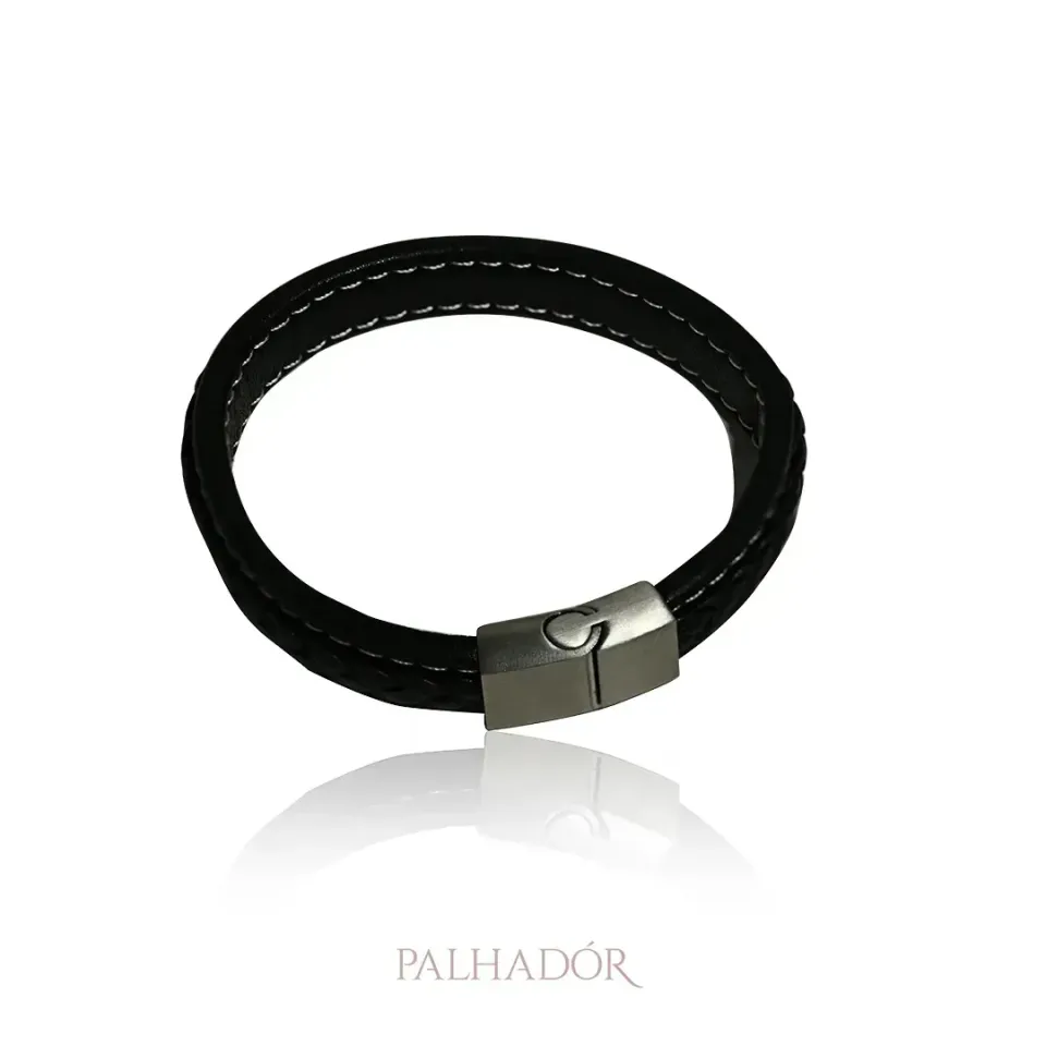 Pulseira Masculina em couro com fecho banhado em ródio branco.